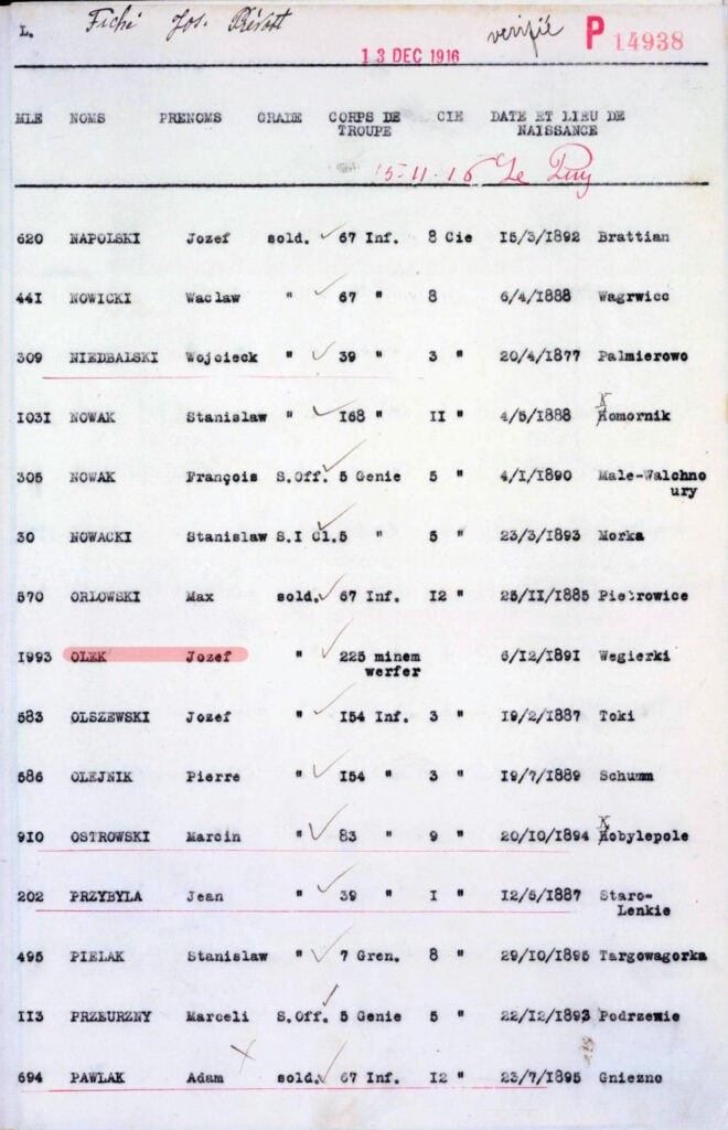 Józef Olek został wzięty do niewoli pod Verdun i przebywał w obozie w Le Puy od 15.11.1916 r.