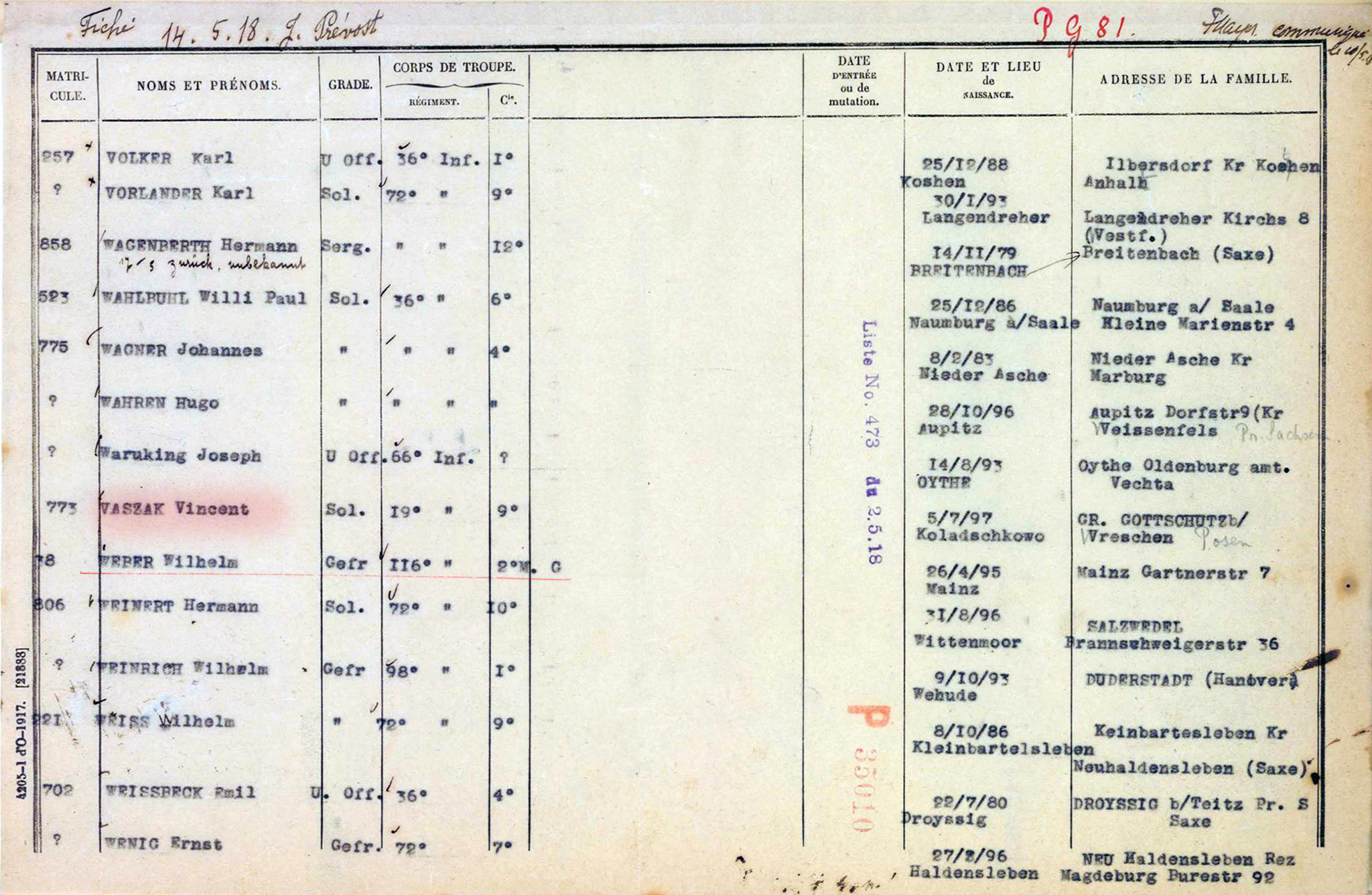 Powołany do armii niemieckiej służył w 9. Kompanii Infanterie-Regiment von Courbière (2. Posensches) numer 19 z Görlitz (ze Zgorzelca).