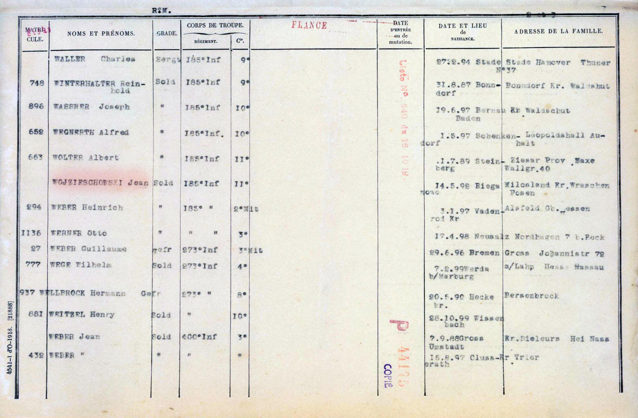 Powołany do służby w armii niemieckiej służył w 11. Kompanii Großherzoglich Badisches Infanterie-Regiment numer 185 z Bapaume (we Francji, w regionie Hauts-de-France). Pułk został powołany na froncie i składał się z jednostek przydzielonych z innych oddziałów.